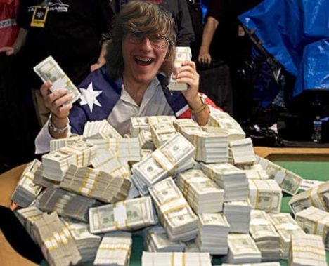 This shocking photograph shows the commi$$ioner attempting to use large wads of money to shave.