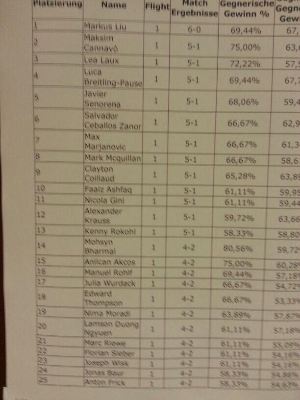 So I am listed as 13th on there, but apparently the top 16 (etc.) places from Milan were taken from the Swiss results – and not who they were knocked out by. So if it is this way again, I should be 10th… we’ll see the results some time this week on the official website when they come out though.